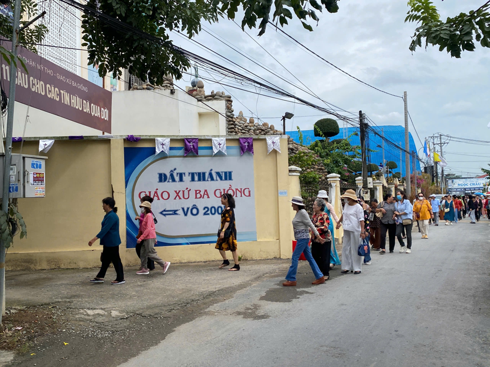 Đoàn đến Ba Giồng lúc 08g45, bắt đầu bằng việc viếng nghĩa trang các Thánh Tử Đạo, cách nhà thờ trung tâm khoảng 300m.