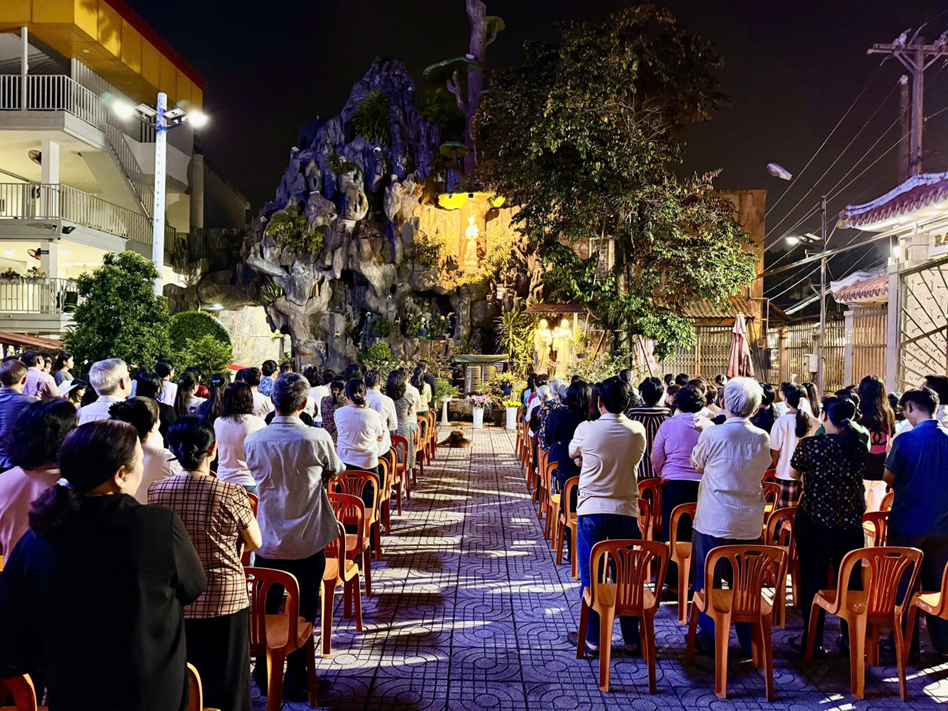 Sau mỗi chục kinh Mân Côi, cộng đoàn cùng cất cao lời ca “Mầu Nhiệm Năm Sự Mừng”, suy niệm về cuộc đời, cái chết và sự Phục sinh trong vinh quang của Chúa Giêsu Kitô. Những lời ca ấy như nối kết lòng người với mầu nhiệm cứu độ, nơi mà sự chết được biến đổi thành niềm hy vọng Phục sinh.