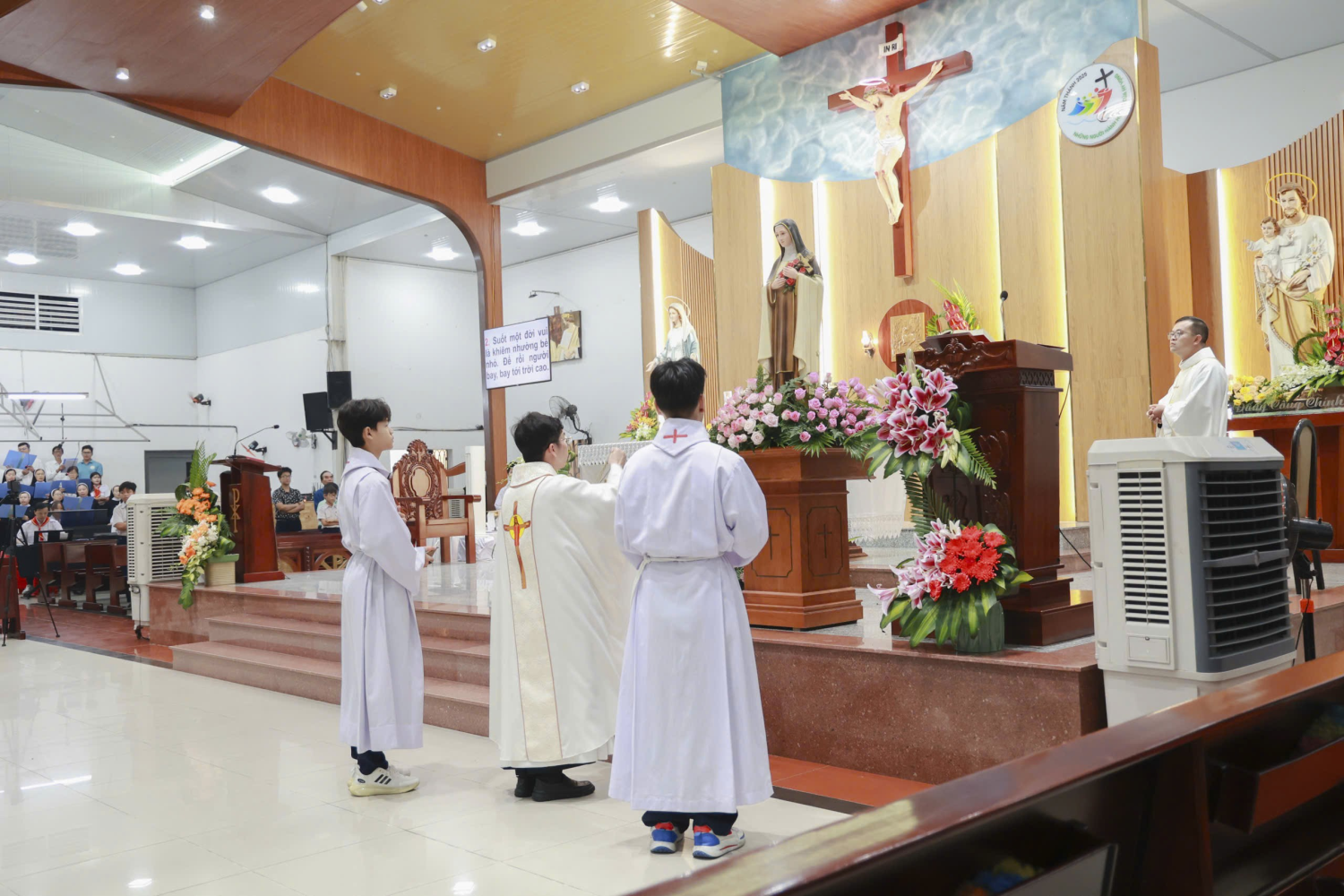 Thánh lễ do cha Giuse Trần Hải Giang - Quản nhiệm giáo xứ - chủ sự. Đồng tế có cha Giuse Đỗ Trọng Luân - phó xứ, cùng sự hiện diện của các nữ tu Hội Dòng Mến Thánh Giá Tân Việt, các ban ngành, đoàn thể và đông đảo cộng đoàn dân Chúa.