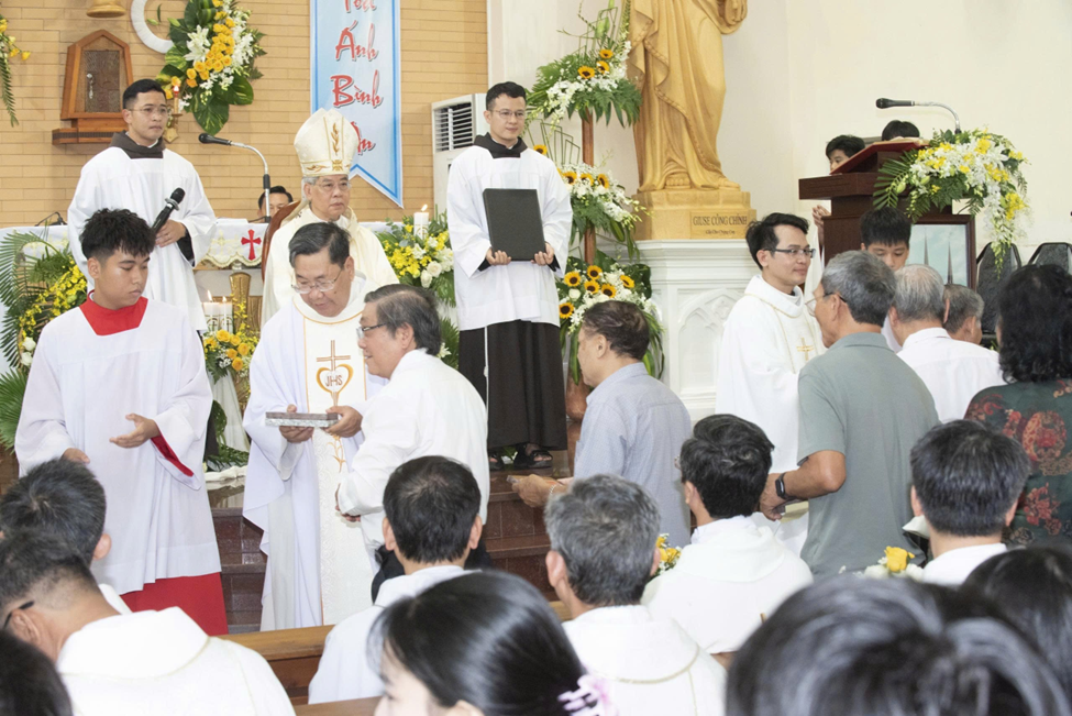 Linh mục Chánh xứ Giuse cũng kính chúc mừng Đức Tổng Giám mục Giuse Nguyễn Năng được tiếp tục tín nhiệm đảm nhận sứ vụ Chủ tịch Hội đồng Giám mục Việt Nam nhiệm kỳ 2025-2028, và bày tỏ lòng biết ơn vì Đức Tổng đã dành sự quan tâm đặc biệt đến hoàn cảnh của giáo xứ, dù ngài bận trăm công nghìn việc của Giáo hội. Cộng đoàn bày tỏ niềm vui bằng bó hoa tươi thắm và tràng pháo tay nồng nhiệt.