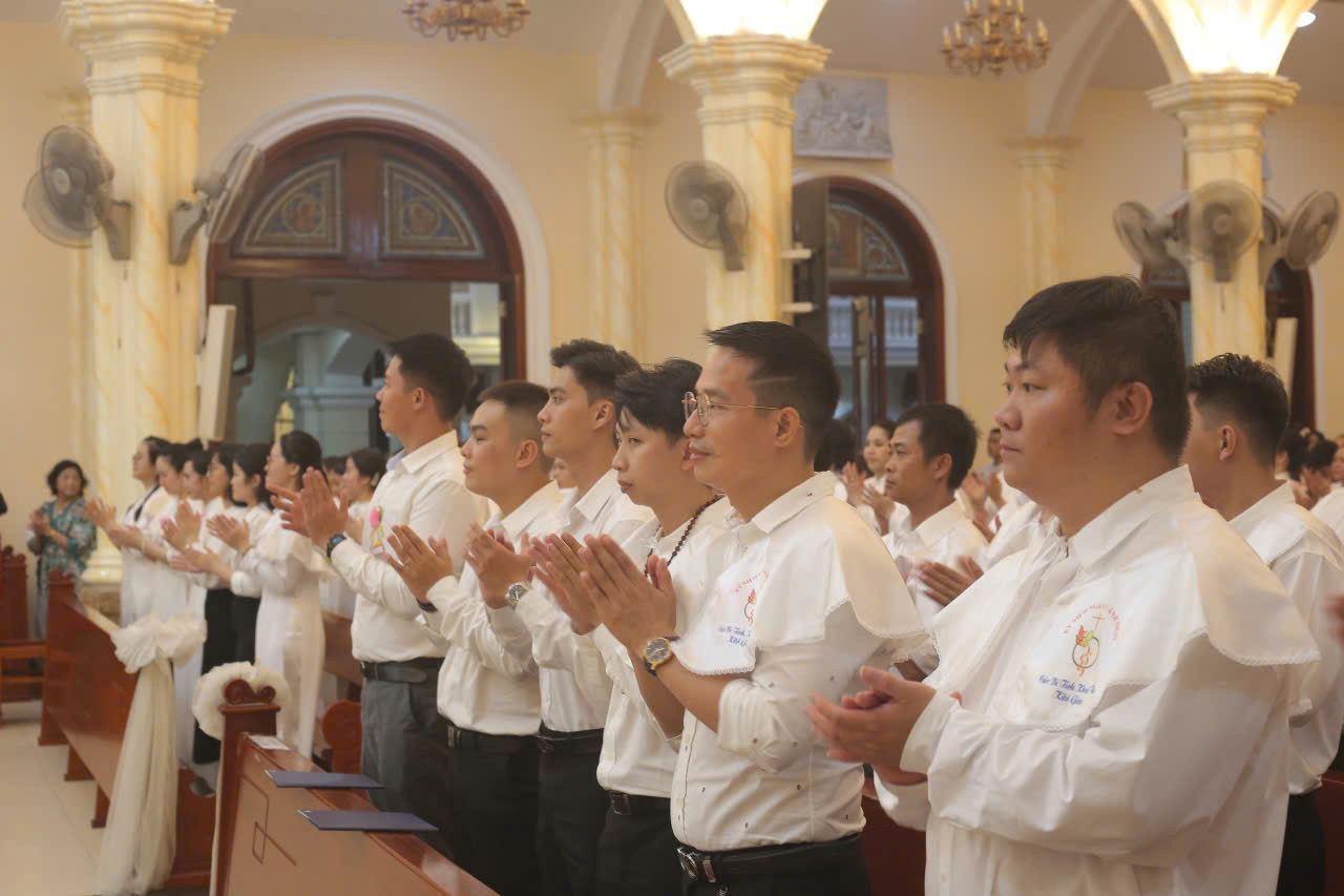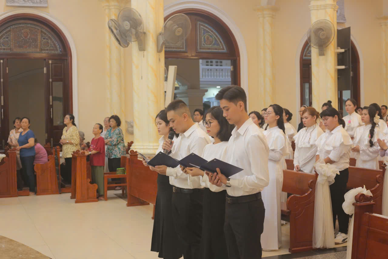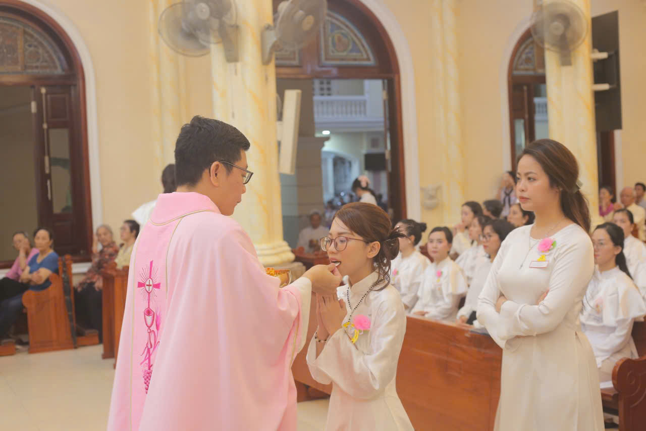 Vào lúc 18g00, Thánh lễ Tạ ơn và rước lễ lần đầu của 40 anh chị em được cử hành trọng thể do cha phó Antôn Trương Ngọc Minh chủ sự, cùng sự hiệp thông của đông đảo cộng đoàn giáo xứ. Trong bài giảng, cha Antôn đã chúc mừng các anh chị em vừa lãnh nhận các bí tích khai tâm, mời gọi họ bước vào đời sống mới với tinh thần sống và làm chứng cho Tin Mừng giữa đời thường. Ngài nhấn mạnh, việc trở nên con cái Chúa trong Năm Thánh 2025 là một ân sủng đặc biệt.