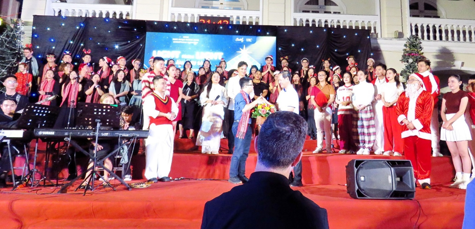 Trong phần giao lưu, anh Duy và anh Thành Vinh đã chia sẻ về hành trình của Cantus Choir, VIC cũng như các hoạt động thiện nguyện gắn liền với dự án. Cantus Choir là đội hợp xướng được thành lập từ năm 2017, quy tụ những người yêu mến âm nhạc Giáng Sinh.