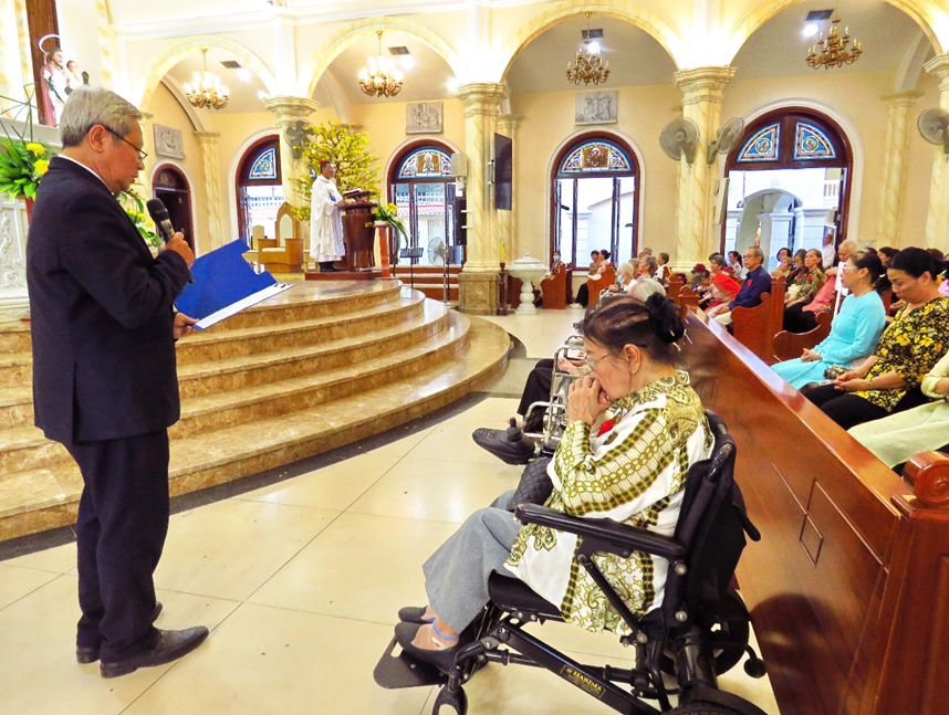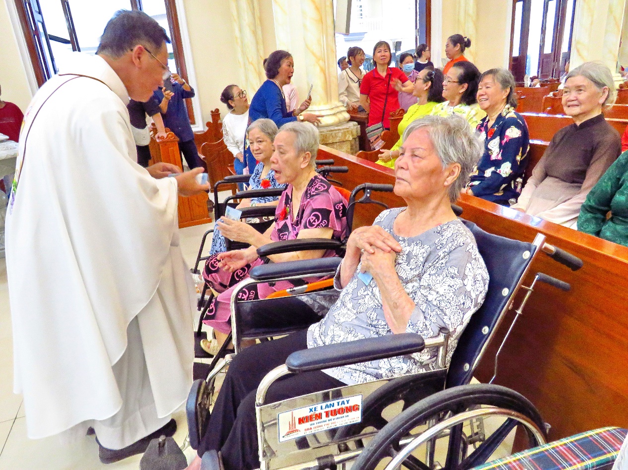 Trong giáo xứ có 440 cụ từ 70 tuổi trở lên được mừng thọ. Hôm nay chỉ khoảng một phần ba hiện diện, có lẽ vì tuổi cao sức yếu hoặc không được con cháu đưa đến nhà thờ. Cha chủ tế đã trao Mình Thánh Chúa cho các cụ tham dự.