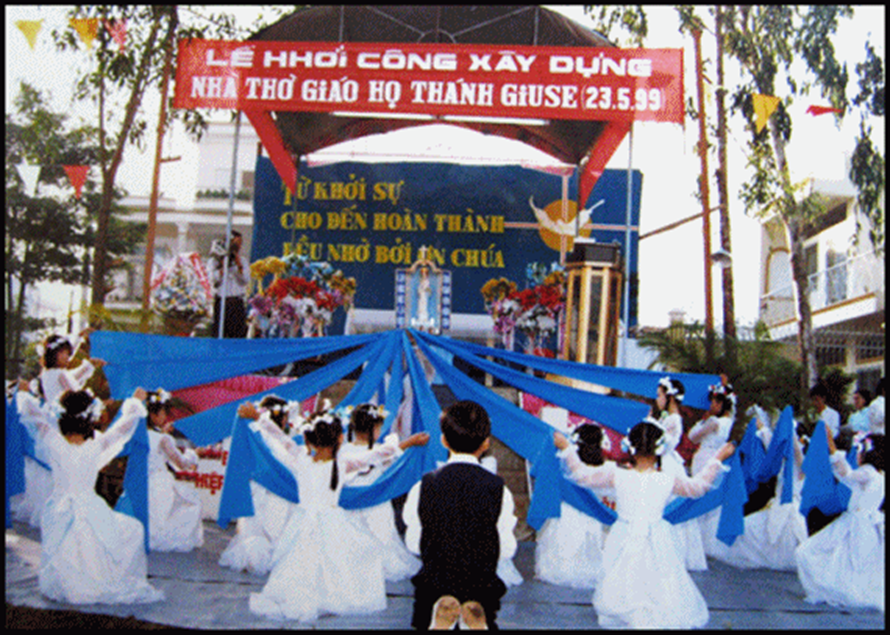Mừng lễ Thánh Giuse Bổn Mạng (năm 2000) lúc nhà thờ đang được xây dựng:
