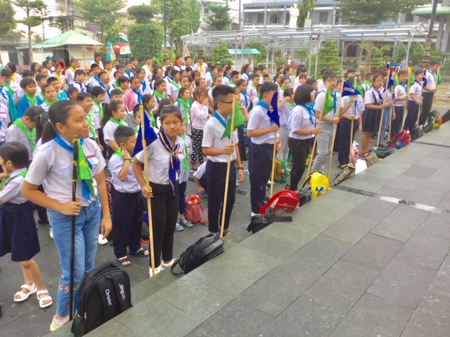Từ 6g30 sáng, với gần 150 trại sinh đã tề tựu về tiền đường nhà thờ Gx Thủ Đức, tập bài hát, cử điệu, băng reo chủ đề của trại hè 2019.