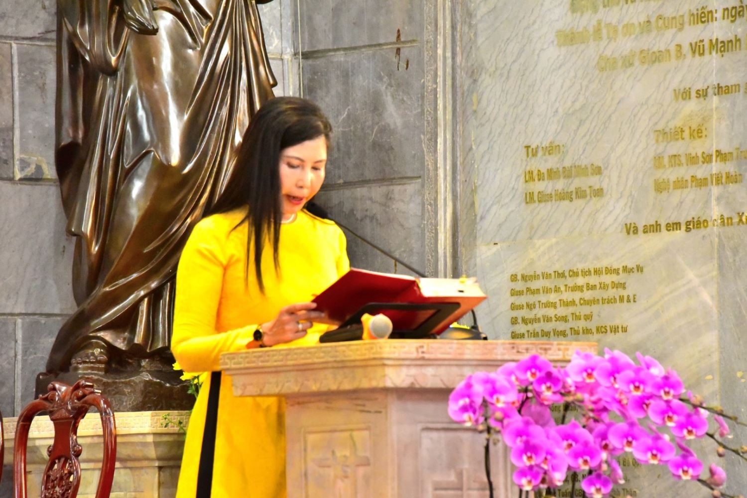 Sau cuộc rước, bà Maria Nguyễn Thị Thường, Chủ tịch Hội đồng Mục vụ, thay lời cộng đoàn bày tỏ tâm tình tri ân và chúc Tết cha chánh xứ Martinô.