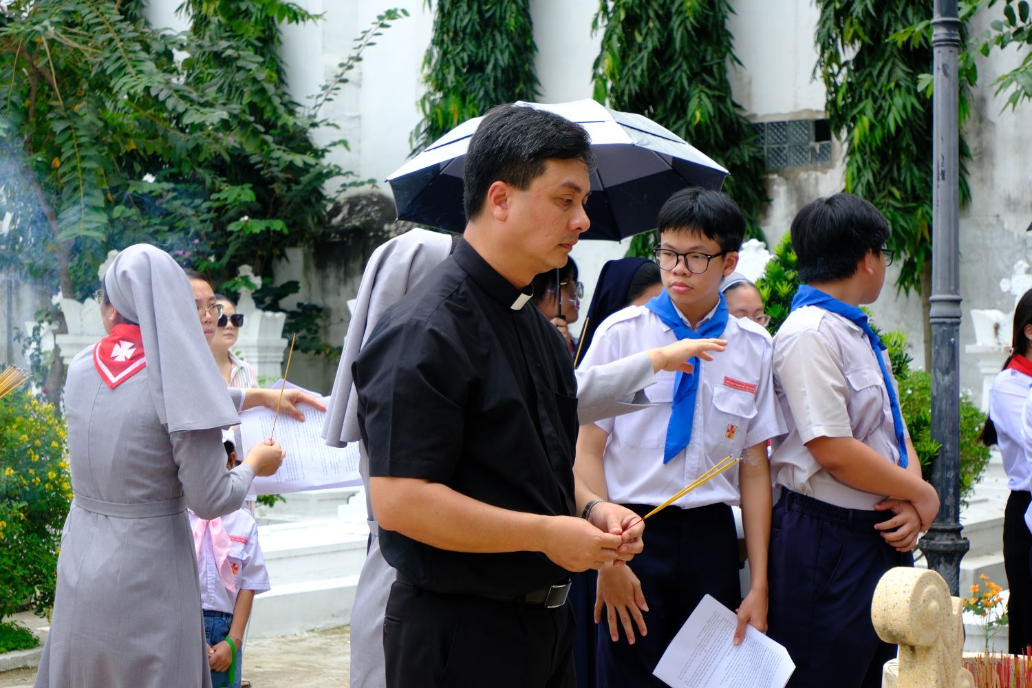 Sau những giây phút cầu nguyện với Kinh Chúa Thánh Thần, cộng đoàn cung kính dâng những nén hương lên phần mộ các linh mục. Đây là một cử chỉ đơn sơ nhưng nói lên lòng biết ơn đối với những vị mục tử đã âm thầm gieo hạt giống Tin Mừng trong Giáo phận.