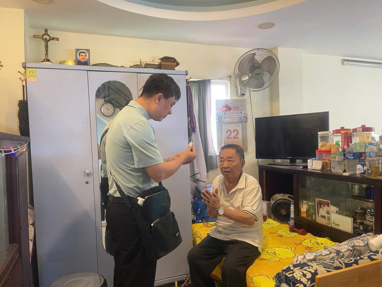 Tinh thần bác ái ấy còn được nối dài qua việc thăm viếng các bệnh nhân và người già yếu không thể đến nhà thờ. Sáng thứ Bảy, 20.12.2025, Linh mục phó xứ Anphongsô Nguyễn Hoàng Ngọc Anh cùng Linh mục Phanxicô Xaviê Nguyễn Phước Chân Lý, SVD đã đến thăm các bệnh nhân tại các giáo họ. Bên cạnh lời thăm hỏi và những phần quà sẻ chia, quý cha đã trao Mình Thánh Chúa và ban các Bí tích, mang lại niềm an ủi thiêng liêng, giúp các bệnh nhân cảm nhận rõ sự hiện diện yêu thương của Thiên Chúa.