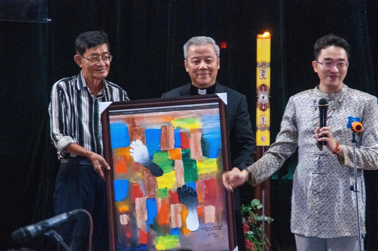 Tiếp đó, đại diện giáo xứ trao quà lưu niệm và chụp hình lưu niệm, ghi lại những khoảnh khắc đẹp của đêm hòa nhạc.