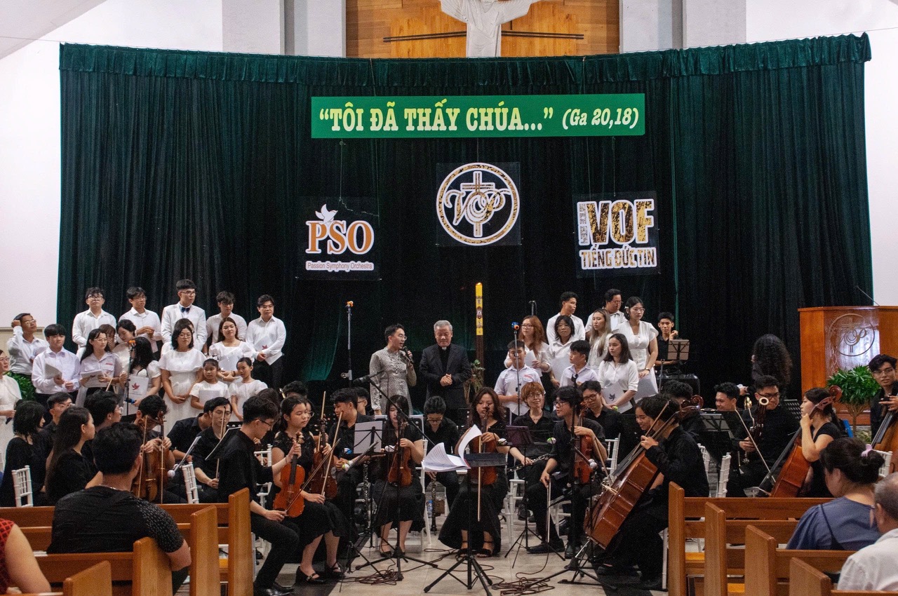 Đêm hòa nhạc quy tụ dàn hợp xướng và các ca viên của giáo xứ, với sự kết hợp hài hòa giữa âm nhạc, ánh sáng và những câu chuyện đức tin, tạo nên một không gian vừa lắng đọng vừa tràn đầy sức sống. Từ những bản thánh ca sâu lắng đến những khúc ca hân hoan mừng Chúa Phục Sinh, tất cả hòa quyện thành lời chứng sống động về tình yêu không bao giờ tắt.