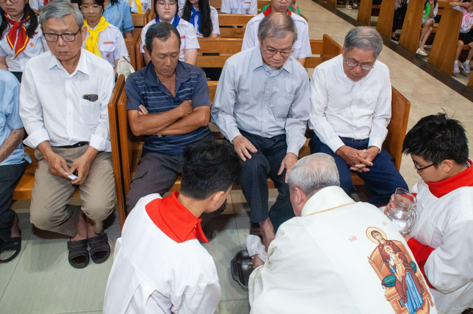 Sau bài giảng, linh mục Giuse Tạ Huy Hoàng đã chủ sự nghi thức rửa chân cho 12 Tông đồ.