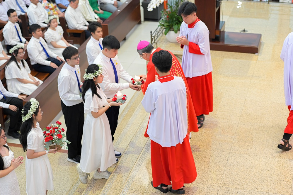 Trong thánh lễ ban Bí tích Thêm Sức, ngoài Đức cha phụ tá Giuse chủ tế, còn có cha phó Gioan Baotixita đồng tế. Cùng hiệp dâng thánh lễ có sự hiện diện đông đảo của cộng đoàn, quý phụ huynh và cha mẹ đỡ đầu của 38 em lãnh nhận bí tích.