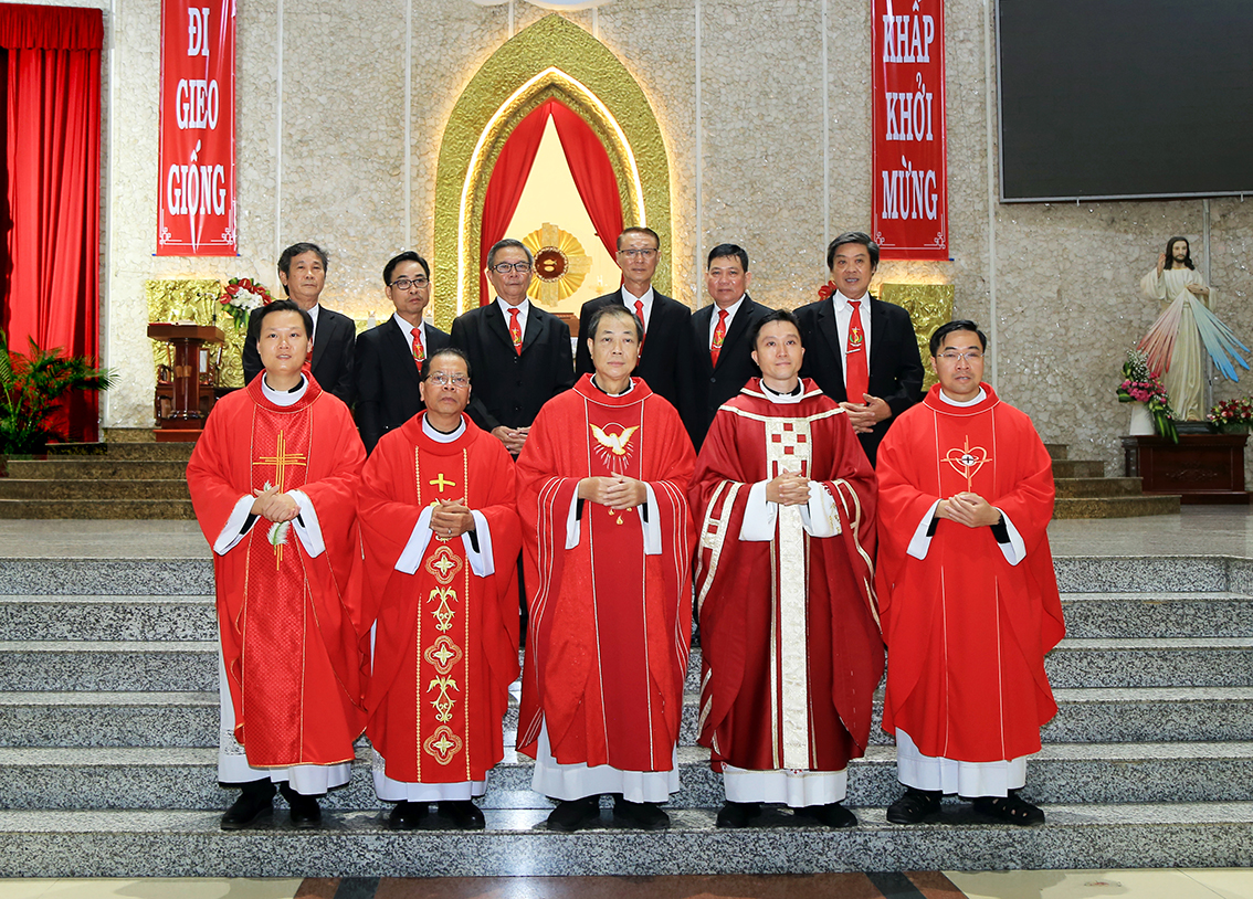 Thánh lễ kết thúc lúc 19g cùng ngày. Trước khi sang Hội trường dự Tiệc mừng, các linh mục đã chụp hình lưu niệm cùng Ban điều hành và các đoàn thể.