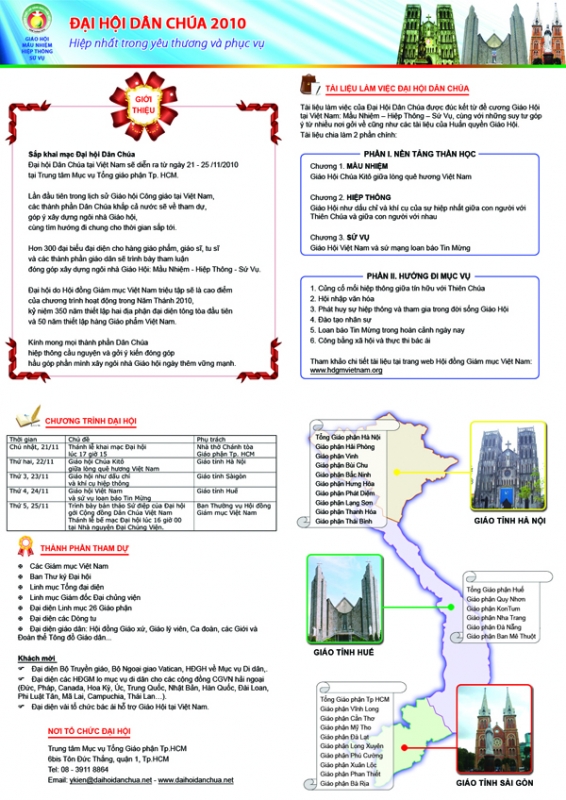Chỉ còn hơn một tuần nữa sẽ diễn ra Đại hội Dân Chúa của Giáo Hội Việt Nam. Để phục vụ Đại hội Dân Chúa, ngày 15-11 Ban Tổ chức Năm Thánh 2010 khai trương một trang web mới tại địa chỉ: http://www.daihoidanchua.net, và mỗi tuần sẽ thực hiện các poster để giới thiệu Đại hội Dân Chúa.