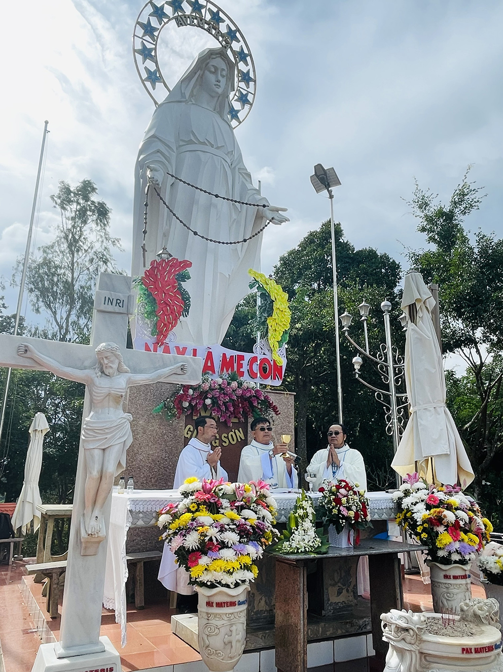 Sáng hôm sau, ngày 05-12-2024, lúc 10g, đoàn kính viếng Đức Mẹ Giang Sơn, giáo phận BMT, và tham dự Thánh lễ do các vị Lm đồng tế cùng với Lm Phó xứ tại đây.