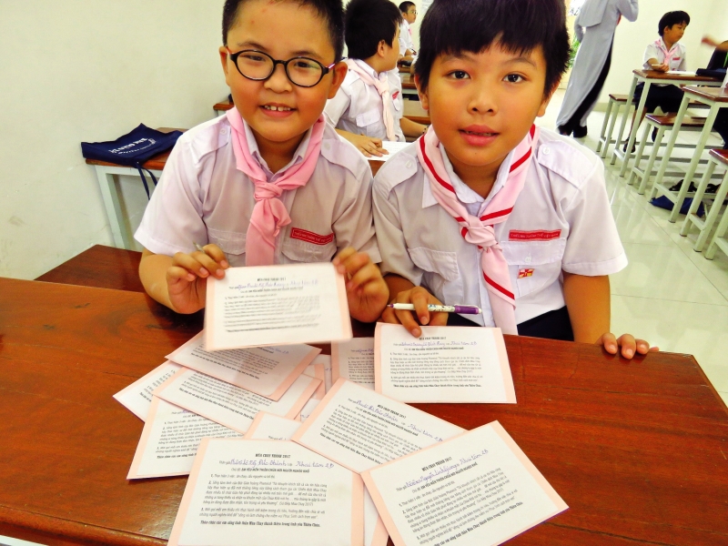 Có em nói: Cô ơi, tiền bác ái này là của con 'ăn chay' không xe hơi nè cô. Vì em được hướng dẫn ăn chay theo kiểu thiếu nhi là không nói tục, chửi thề; không nói hành, nói xấu; không ăn vặt; không mua đồ chơi v.v...