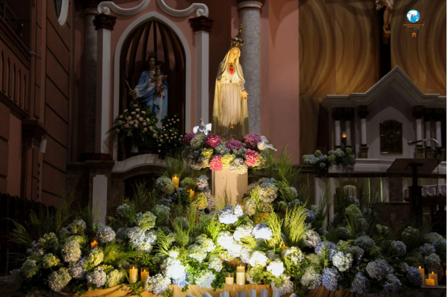 Với tâm tình tạ ơn, cộng đoàn cùng dâng lên Mẹ những nhành hoa tươi, những ngọn nến lung linh như biểu tượng của niềm tín thác và lòng cậy trông. Lời ca tiếng hát của đoàn con đưa mọi tâm hồn về cùng Mẹ, xin cho thế giới được bình an, các tôn giáo được hiệp nhất và nhân loại cùng chung tay vun đắp hòa bình.