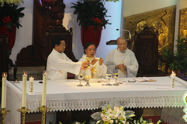 Cuối lễ, vị đại cộng đoàn LCTX đã có lời cảm ơn và dâng những bó hoa tươi thăm đến quý linh mục đồng tế.