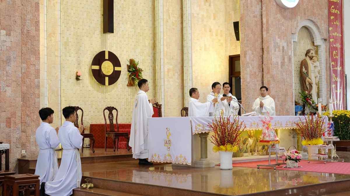 Đồng tế có Lm Vinhsơn Đỗ Viết Khôi - quản xứ Châu Nam, Lm Vinhsơn Mai Minh Tuấn - phó xứ Bùi Môn, Lm Vinhsơn Vũ Đức Trọng - phó xứ Tân Đông, Lm Phaolô Vũ Minh Huy - phó xứ Bạch Đằng.