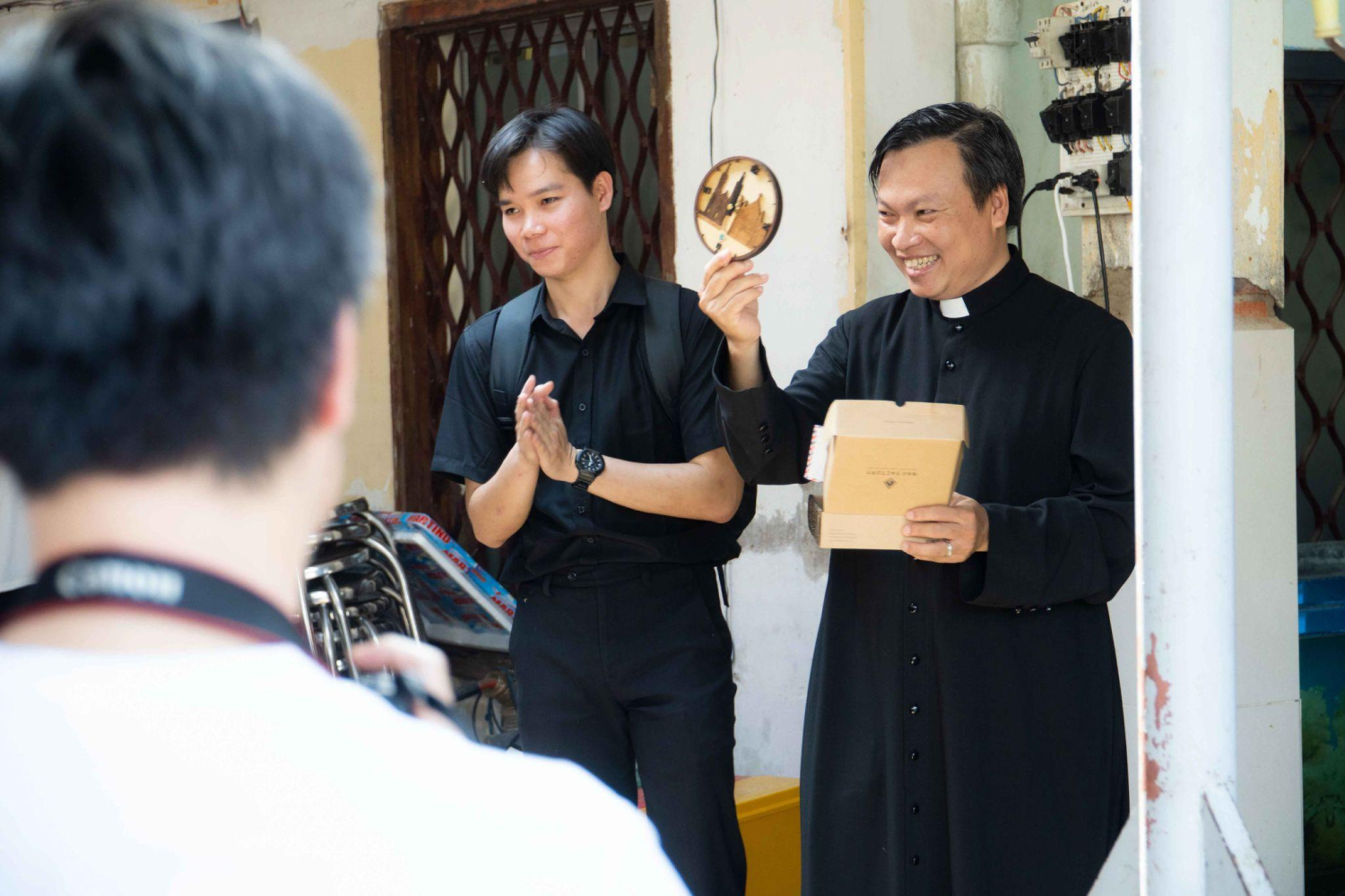 Bắt đầu từ lúc 8g, ngay khi đặt chân đến giáo xứ, các thầy chia thành hai nhóm lớn.