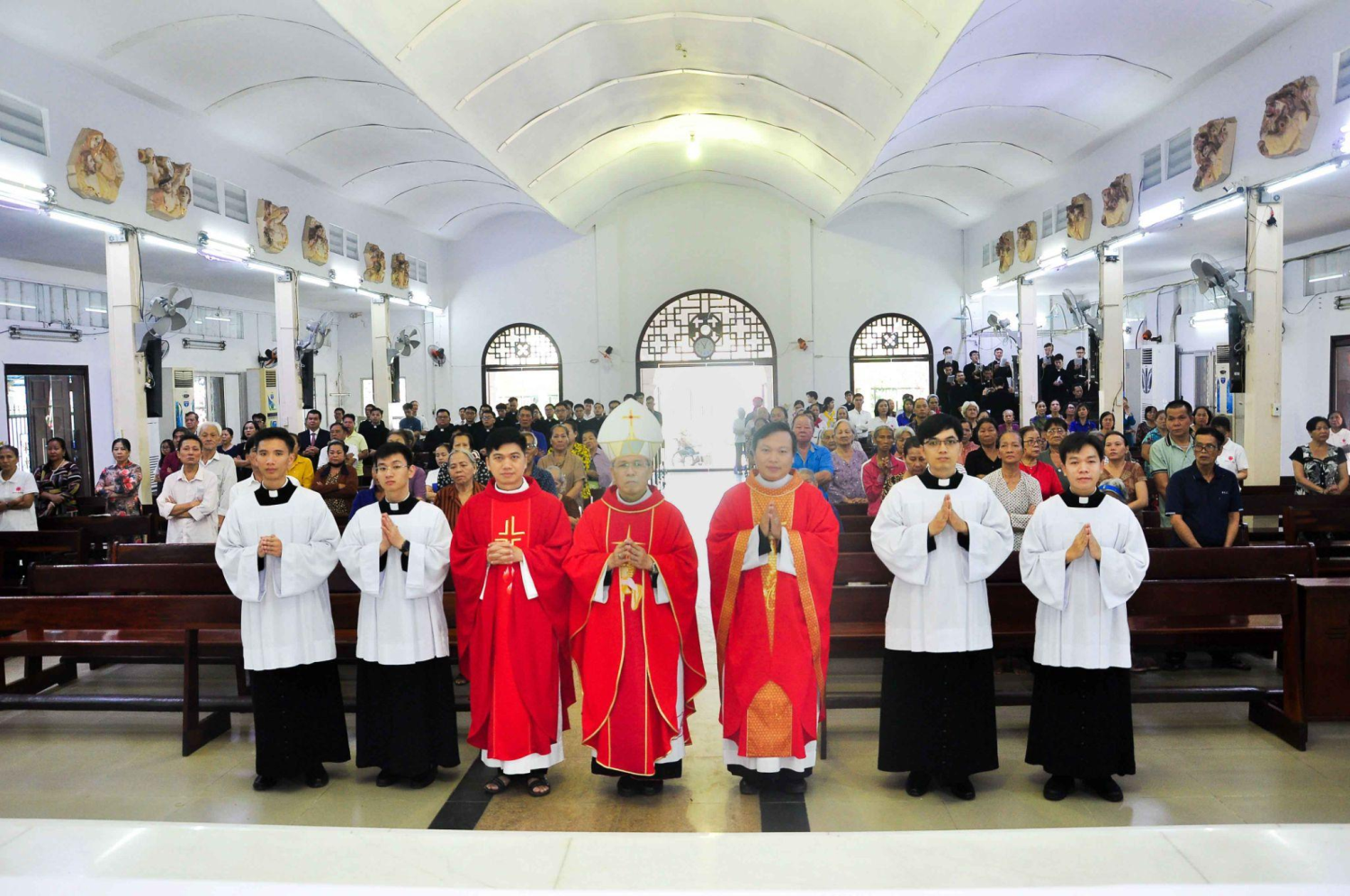 Thánh lễ được cử hành lúc 10g do Đức cha Giuse chủ tế. Đồng tế với ngài có Lm Giuse Ngô Vũ Anh Tuấn - chánh xứ Martino và Lm Gioan Baotixita Ngô Hữu Tiến.