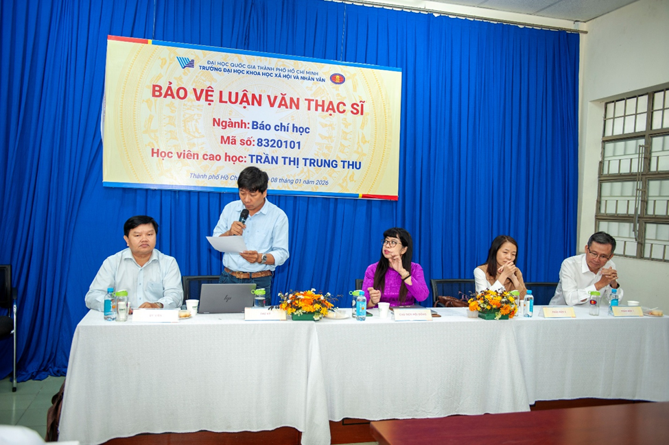 Chiều thứ Năm, ngày 08.01.2026, tại Trường Đại học Khoa học Xã hội và Nhân văn (ĐHQG-HCM), một học viên cao học đã bảo vệ thành công luận văn thạc sĩ với đề tài “Đặc điểm tiếp nhận thông tin tôn giáo của cộng đồng Công giáo trên truyền thông xã hội tại TP.HCM”, do PGS.TS. Nguyễn Đức Lộc hướng dẫn.