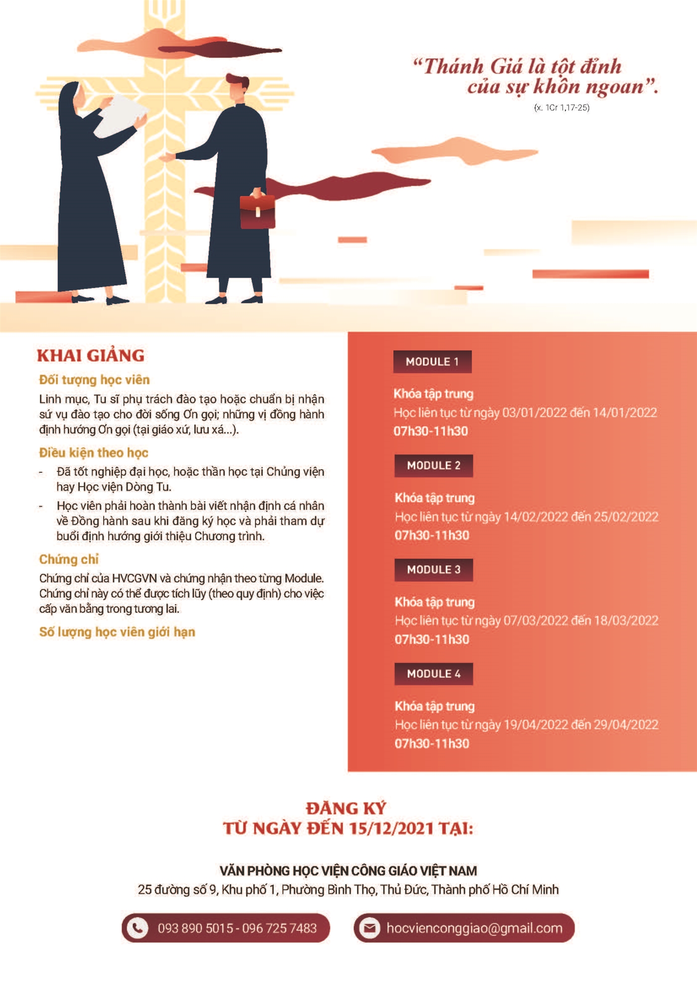 - Năm học 2022-2023, HVCGVN sẽ khai giảng thêm chương trình: Mục vụ Văn hóa