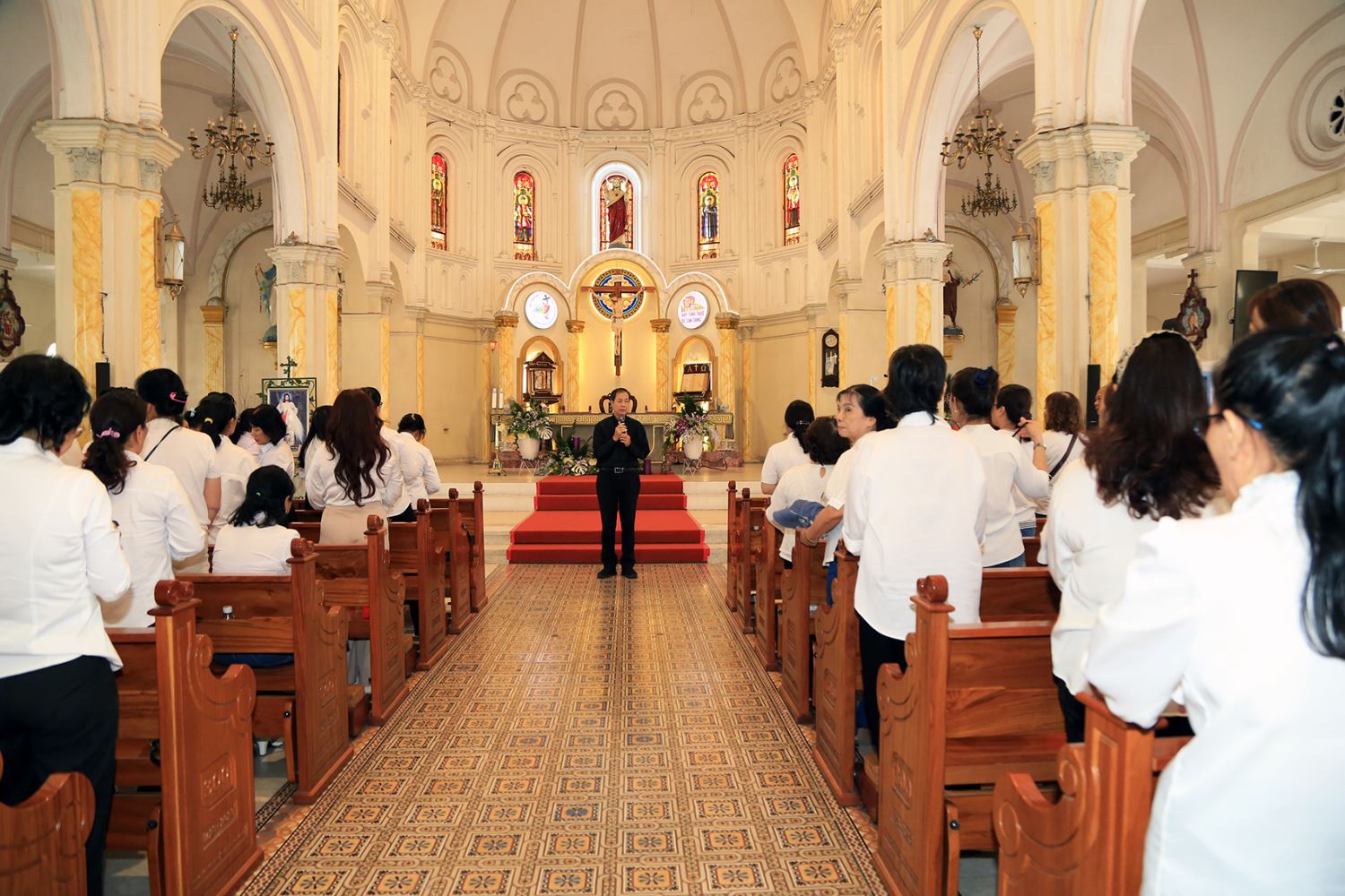 Sau phần đón tiếp và tìm hiểu lịch sử, đoàn chuẩn bị bước vào Thánh lễ.