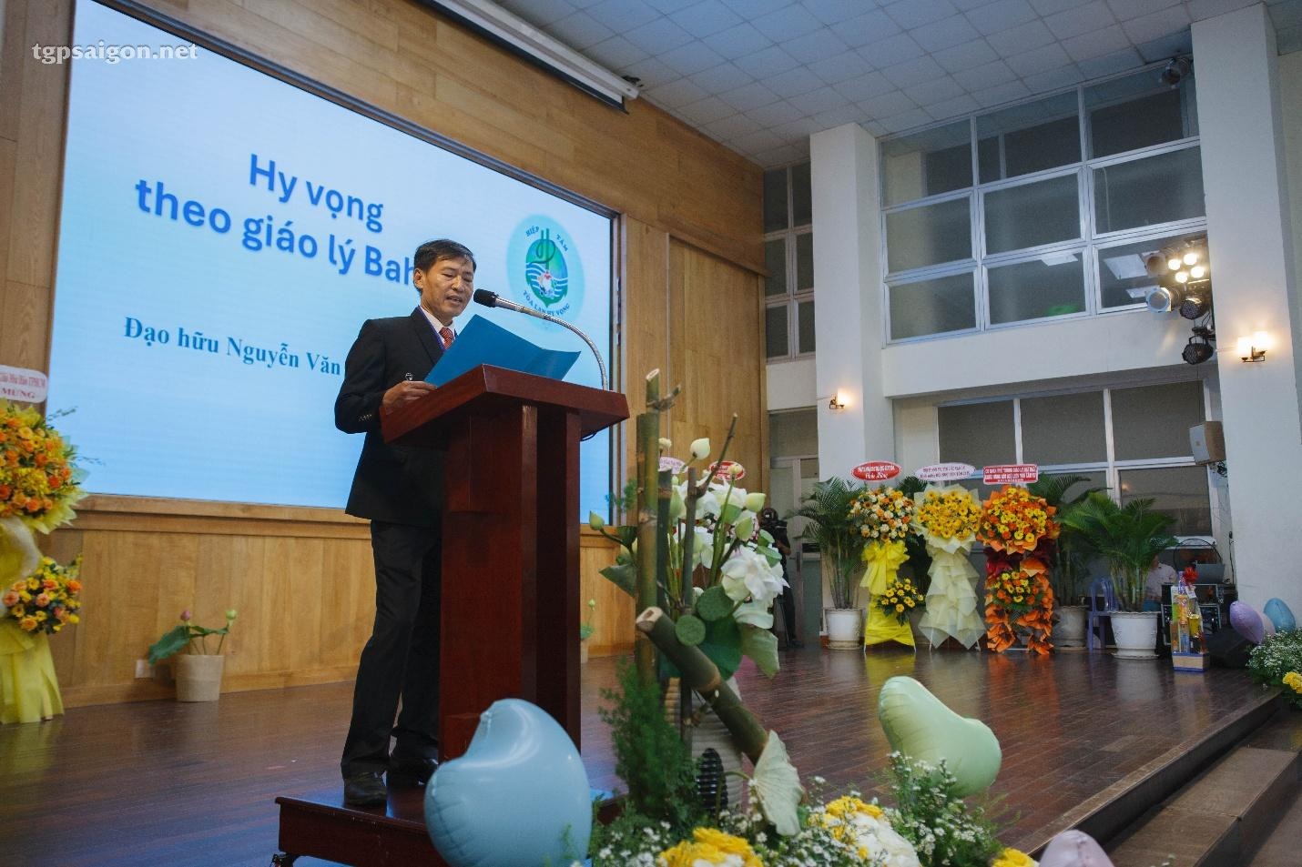 Mở đầu phần thuyết minh, đạo hữu Nguyễn Văn Trường (Baha’í) trình bày chủ đề “Hy vọng - động lực làm việc trong khi chờ đợi”.