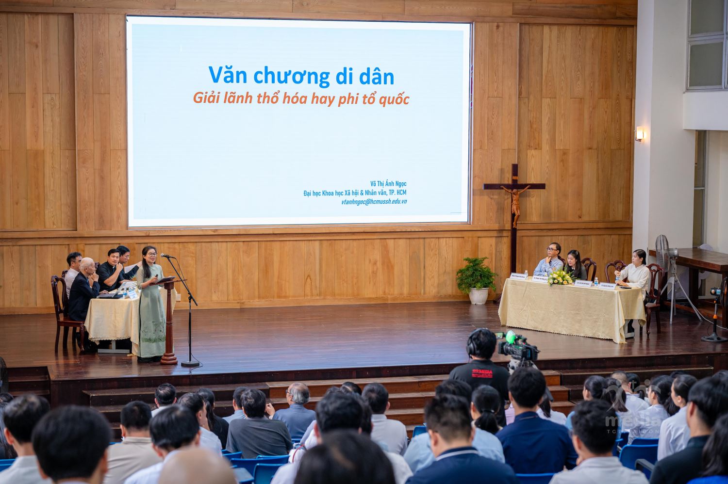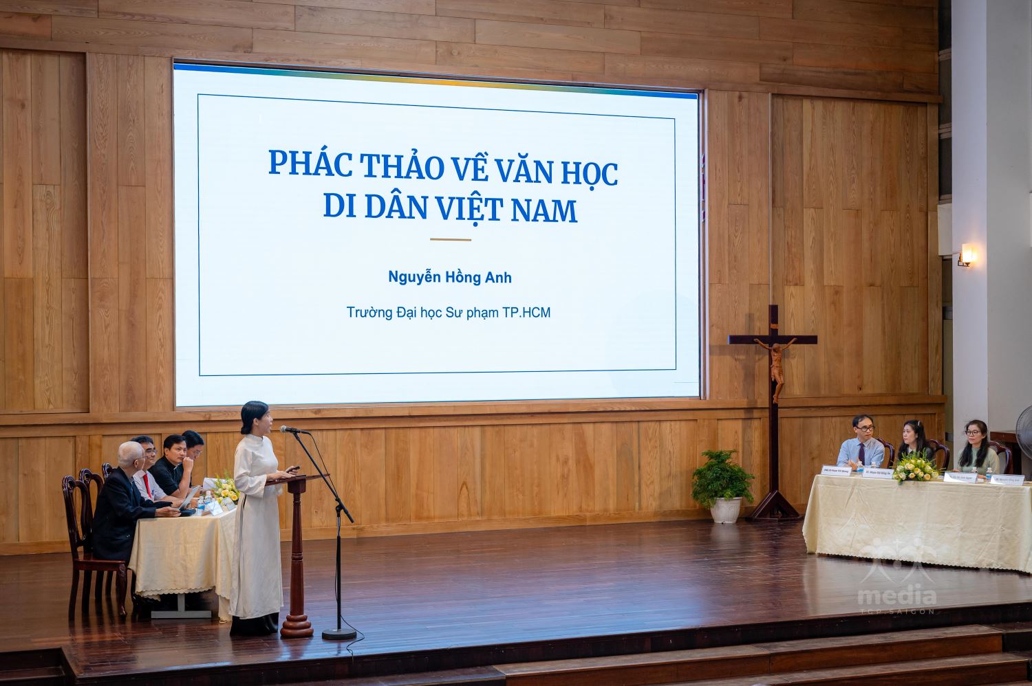Tiếp đến các phiên tham luận, Tiến sĩ Nguyễn Hồng Anh đã trình bày một cái nhìn tổng quan và hệ thống về văn học di dân Việt Nam. Khởi đi từ thuật ngữ "diaspora", diễn giả giải thích đây là khái niệm dùng để chỉ các cộng đồng ly tán, có nguồn gốc từ điển tích Kinh Thánh Cựu Ước về dân Do Thái lưu đày trong sa mạc. Trong bối cảnh Việt Nam, dòng văn học này hình thành rõ nét sau năm 1975, gắn liền với các làn sóng di tản sang Hoa Kỳ và các nước phương Tây.