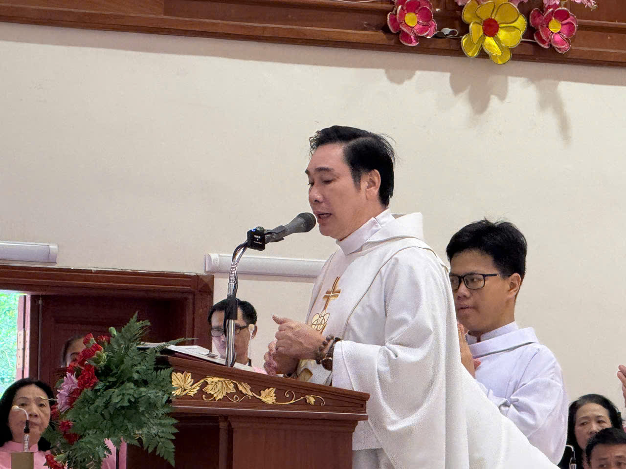 Trong Thánh lễ hôn phối, linh mục (Lm) Giuse Lê Ngọc Đa - chánh xứ Bùi Phát chủ tế, dựa trên bài Tin Mừng đã chia sẻ: Mỗi người đều được Chúa gọi để ra đi làm chứng cho Ngài. Những ngày vừa qua, trong Tổng Giáo phận Sài Gòn có những buổi gặp gỡ, học hỏi của Hội đồng Mục vụ Giáo xứ các liên hạt nhằm nhắc nhớ rằng: Mỗi Kitô hữu là Môn Đệ Thừa Sai. Chúng ta không thể dửng dưng hay làm ngơ với bổn phận loan báo Tin Mừng. Đó là việc phải làm, chúng ta phải sống theo Tin Mừng và thực hành Lời Chúa để làm sao có thể giúp nhiều người tin nhận Chúa.