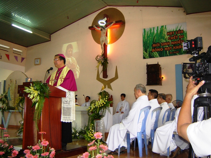 Trong bài giảng, Đức cha Giuse chia sẻ: Lễ Tạ ơn không phải chỉ trong một ngày mà cả cuộc đời, nên có thể gọi là lễ Biết ơn: Biết ơn Chúa đã ban Hồng ân Thánh chức nhưng không. Biết ơn Chúa đã chấp nhận cho làm hạt lúa chết đi để trổ sinh nhiều bông hạt trong cánh đồng truyền giáo mênh mông. Và biết ơn Chúa đã ban sự nâng đỡ từ nhiều phía. Xin quý vị đã thương cầu nguyện cho cha trẻ thì hãy tiếp tục nhớ đến ngài trong lời nguyện cầu.