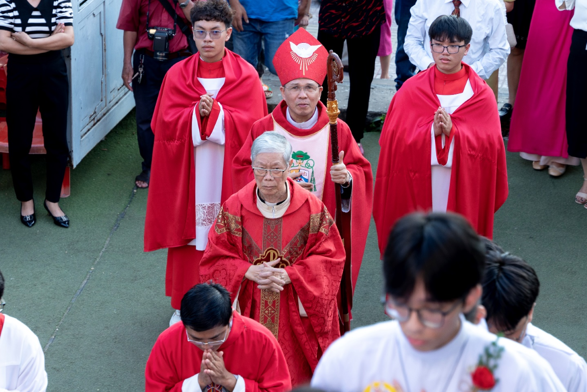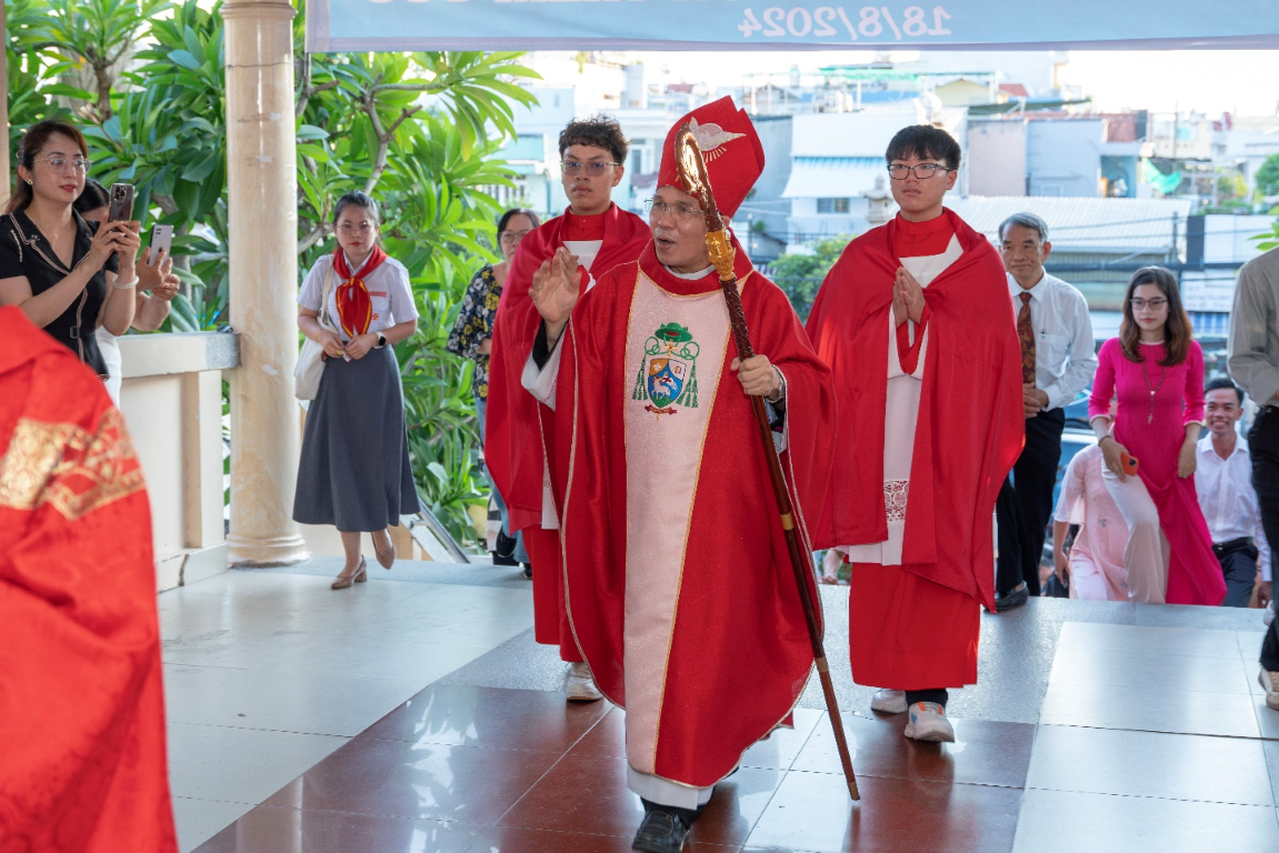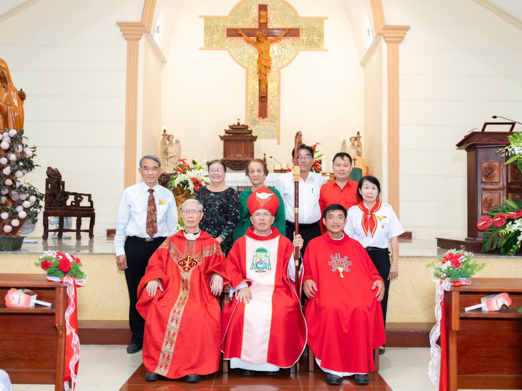 Thánh lễ do ĐGM Phụ Tá Giuse chủ tế, đồng tế với ngài có Lm chánh xứ Giuse Ngô Quang Tuyên và Lm Gioan Baotixita Đỗ Văn Tiến, dòng Don Bosco ở Cần Giờ.