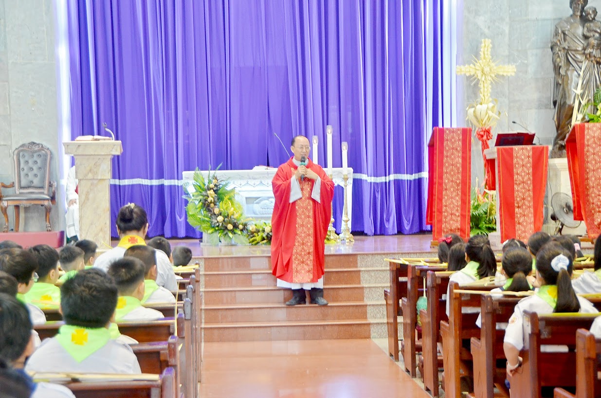 Chia sẻ Tin Mừng, linh mục Barnaba Maria diễn giảng về ý nghĩa của Lễ Lá, hay còn gọi là Chúa nhật Lễ Lá. Ngài quảng diễn: “Hôm nay là ngày mở đầu của Tuần Thánh, và là ngày tưởng niệm biến cố của Chúa Giêsu tiến vào thành Thánh Giêrusalem trong niềm vui vinh quang, nhưng chúng ta cũng hướng tới cuộc khổ nạn và sự phục sinh của Ngài. Chúng ta bước vào Tuần Thánh với tâm tình cầu nguyện cách đặc biệt, biết hy sinh và sám hối, sống hiếu thảo với ông bà, cha mẹ và yêu thương giúp đỡ mọi người.”