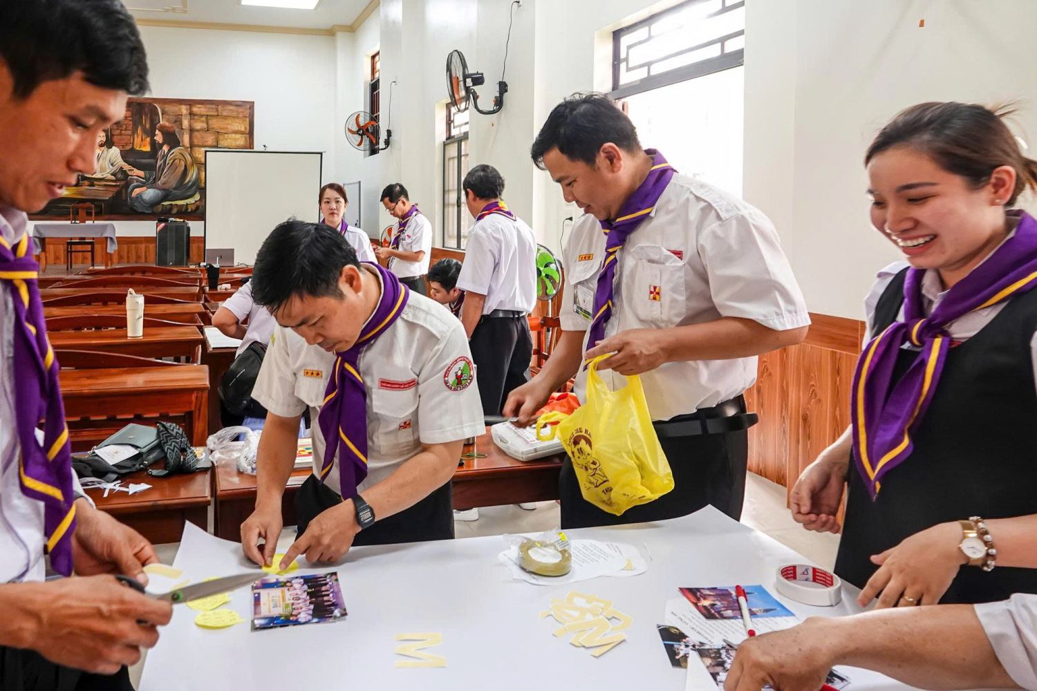 Nhớ lại những ngày đầu phân chia công tác, cả SMS và BĐH đều có chút bỡ ngỡ vì tất cả đều cùng làm việc, giao việc qua Zoom - dù hiện đại và tiện lợi nhưng vẫn thiếu đi sự tương tác trực tiếp. Thế nhưng, tất cả những lo lắng đó đã nhanh chóng tan biến khi mọi người thật sự gặp nhau. Từ những giờ cùng nhau làm việc, cùng ngồi học, cùng tập dợt cho các tiết mục Lửa thiêng Thánh Thể - đơn sơ thôi nhưng đầy ý nghĩa; đến những tấm Báo tường sinh động, dễ thương, mang đậm dấu ấn riêng của từng đội. Những khoảnh khắc làm bài thi, cùng sinh hoạt, cùng nhảy múa, cùng cười vang trời đã dần xóa đi khoảng cách vùng miền, để rồi tất cả mọi người trở nên gần nhau hơn lúc nào không hay.