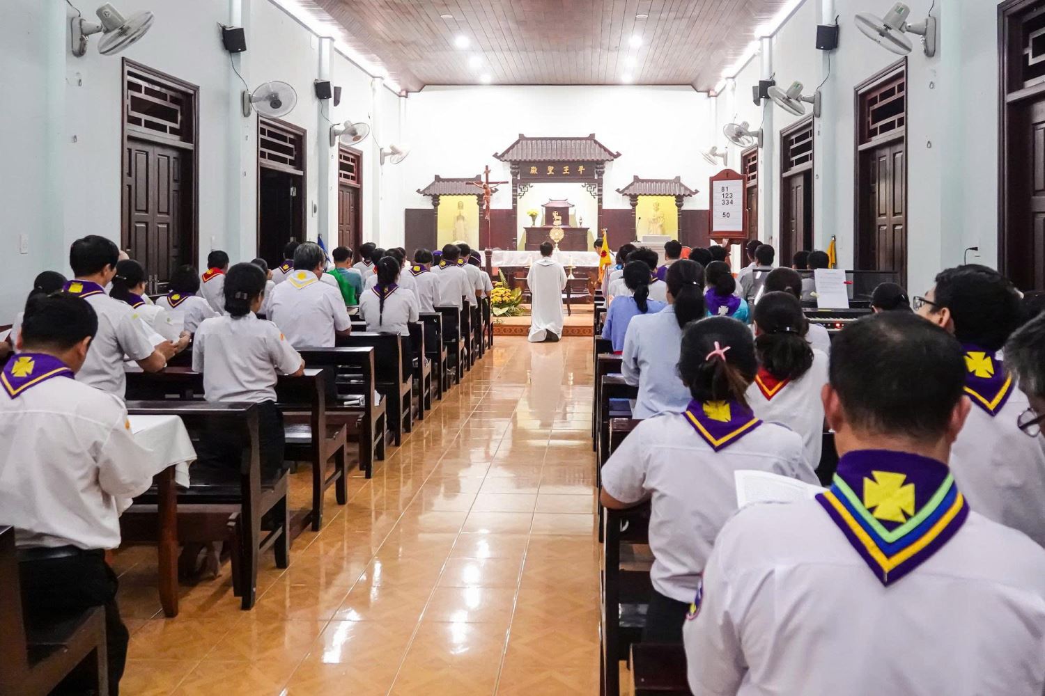 Sau bữa tối, giờ Lửa Thiêng Thánh Thể với chủ đề: Mỗi Kitô hữu là một môn đệ thừa sai. “Anh em là ánh sáng thế gian.” (Mt 5,14)