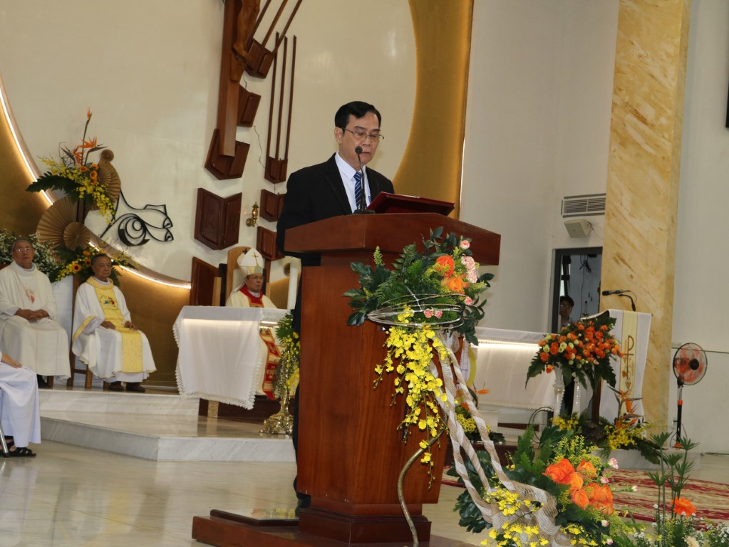 ĐGM Phụ Tá Giuse chúc mừng giáo xứ Tân Việt nhân dịp kỷ niệm 70 năm hồng phúc thành lập giáo xứ. Thay lời Đức Tổng, ngài cám ơn linh mục chánh xứ, phó xứ và tất cả những ai đã cộng tác với ngài trong công việc phát triển giáo dục đức tin cho tất cả mọi người, mọi thành phần trong giáo xứ, giúp giáo xứ Tân Việt phát triển đến ngày này.