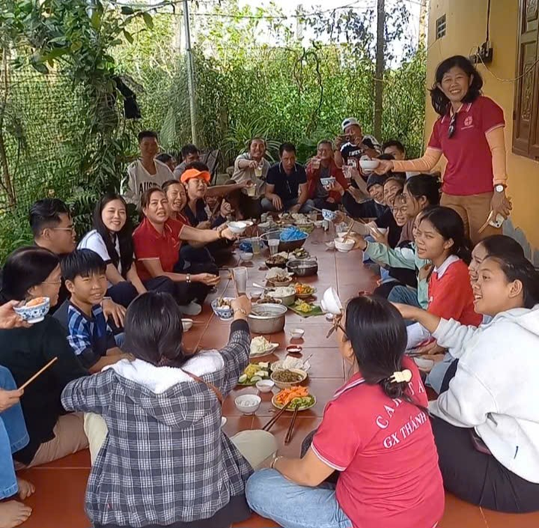 Sau bữa cơm trưa giản dị với những món ăn cây nhà lá vườn, đậm đà tình người, đoàn chào tạm biệt gia đình anh chị để trở về giáo họ.