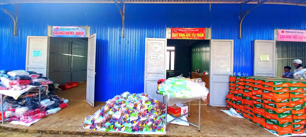 Từ 4 giờ sáng, các chị em đã thức dậy nhóm bếp, chuẩn bị bữa ăn và sắp xếp quà để sẵn sàng cho “Phiên chợ 0 đồng” diễn ra trong ngày Chúa nhật.