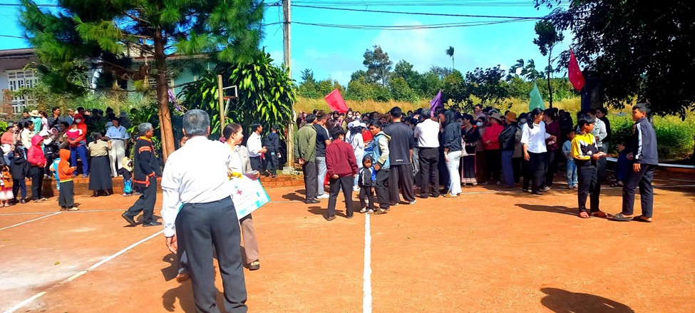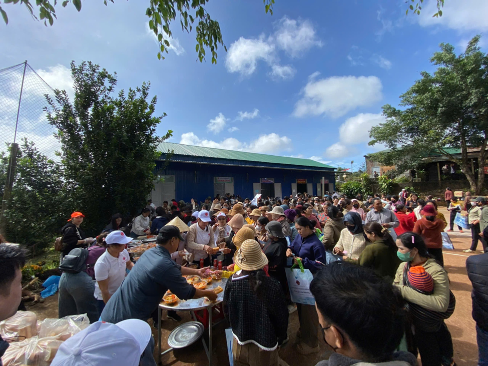 Mỗi người dân trong buôn, không phân biệt tôn giáo hay độ tuổi, đều được phát phiếu nhận quà, thưởng thức các món ẩm thực miễn phí và nhận một túi xách để “đi chợ” với giá “0 đồng”.
