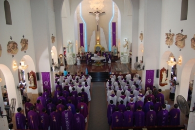 Hôm nay chúng ta qui tụ về thánh đường này rất đông, không chỉ giáo dân mà còn rất nhiều linh mục. Địa bàn gia đình Giáo phận, không giới hạn trong Thành phố Hồ Chí Minh mà còn nối dài bất tận, không phải ở đời này mà còn ở đời sau; sau cái chết chúng ta vẫn còn tình hiệp thông với nhau.