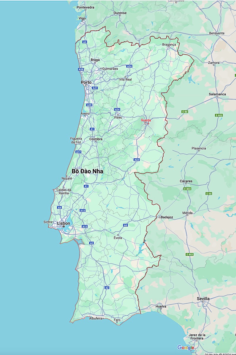 Thành phố Guarda - quê hương của cha Francisco de Pina ở phía Đông Bắc Bồ Đào Nha. một quốc gia Nam Âu, phía Tây và Nam giáp Đại Tây Dương, phía Đông và Bắc giáp Tây Ban Nha.