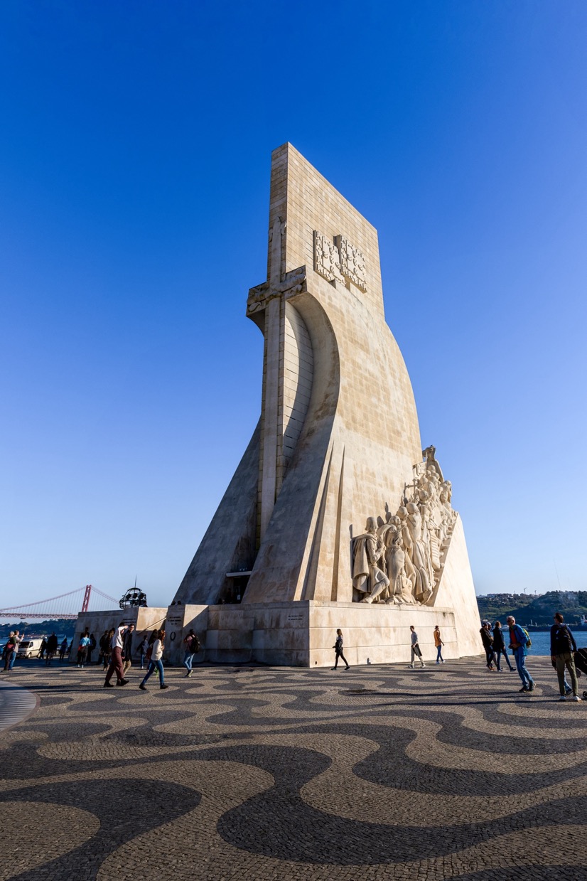 Tượng đài tả cảnh thuyền trưởng, thuỷ thủ và các nhà truyền giáo trên thuyền hướng ra cửa biển ở quảng trường cảng Praia do Restelo