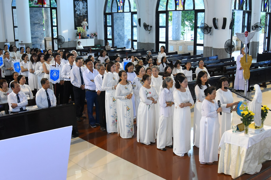 Sau đó, Thánh lễ được cử hành lúc 17g30 thật trang trọng và sốt sắng. Ngoài các hội viên Legio, tham dự còn có các nữ tu, Hội đồng Mục vụ giáo xứ Đồng Tiến và đông đảo cộng đoàn dân Chúa.