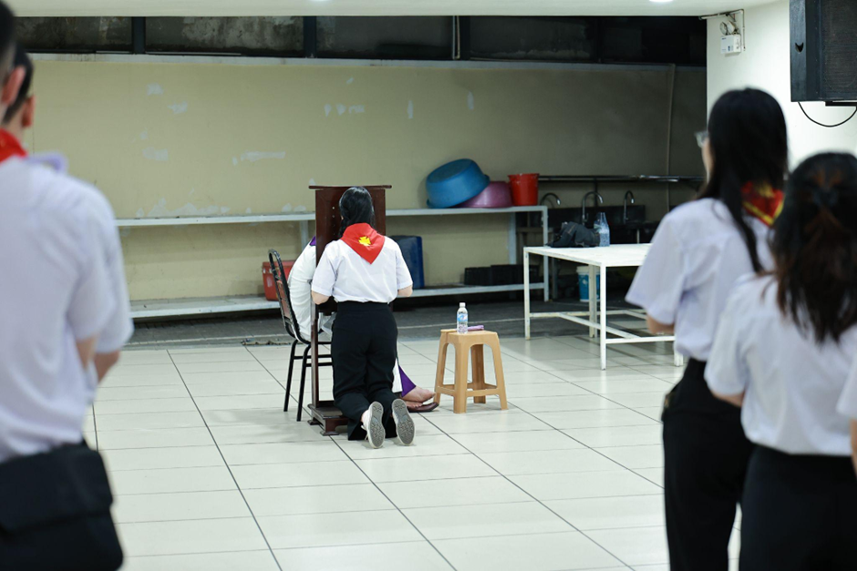 Sau tĩnh tâm, các Huynh trưởng đã tập nghi thức tuyên hứa.