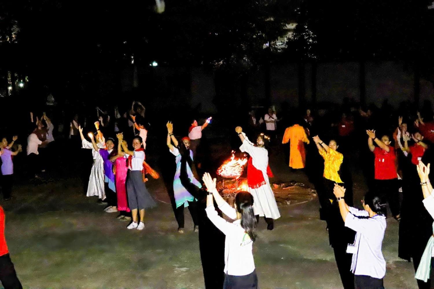 Kết thúc đêm Lửa Thiêng là giây phút lắng đọng: “Mang Lửa Về Tim”. Các đội trưởng lên nhận lửa từ ngọn lửa thiêng để thắp cho đội mình. Các SMS cầm nến sáng trong tay, trở về góc đội, cùng nguyện xin Chúa – suối nguồn tình yêu – xua tan những góc khuất lạnh lẽo trong tâm hồn mỗi người, và biến đổi bản thân để thật sự trở nên ánh sáng thế gian như lòng Chúa mong ước.