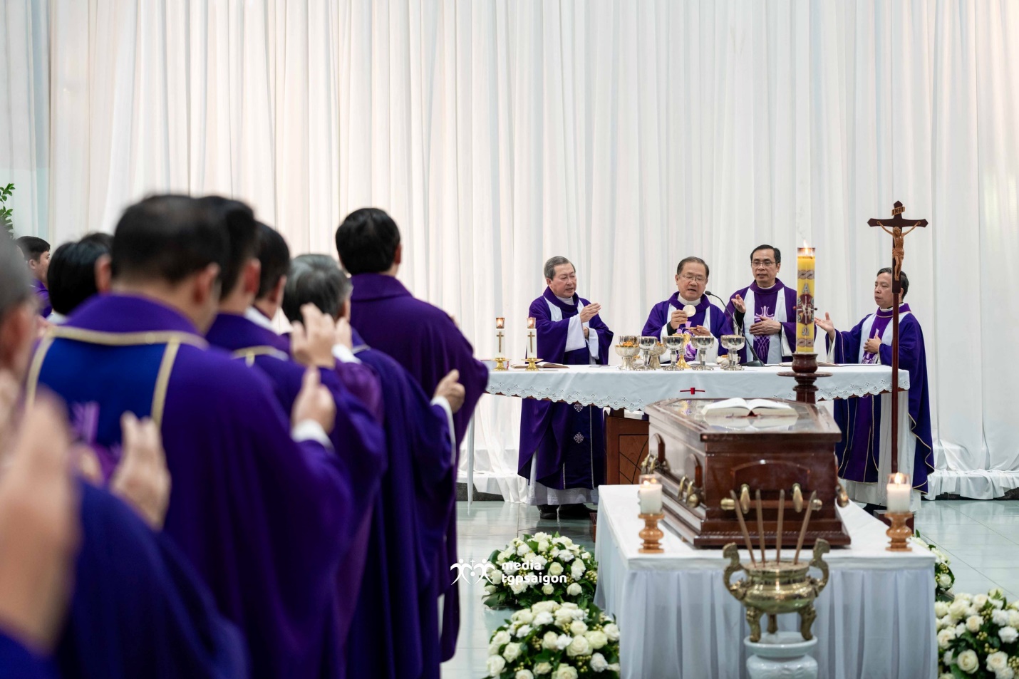 TGPSG - Trong tâm tình tràn đầy niềm xúc động, thương nhớ vị cha chung - Đức cố Hồng Y Gioan Baotixita Phạm Minh Mẫn, đoàn linh mục khoảng 140 vị đến từ các giáo hạt Phú Nhuận, Phú Thọ, Chí Hòa và Tân Sơn Nhì, cùng một số linh mục trong giáo phận, đã đồng tế Thánh lễ cầu nguyện cho linh hồn của Đức cố Hồng Y. Thánh lễ được cử hành lúc 15g ngày 24-3-2026, tại Nhà nguyện cổ - Trung tâm Mục vụ Tổng Giáo phận Sài Gòn (TGPSG).
