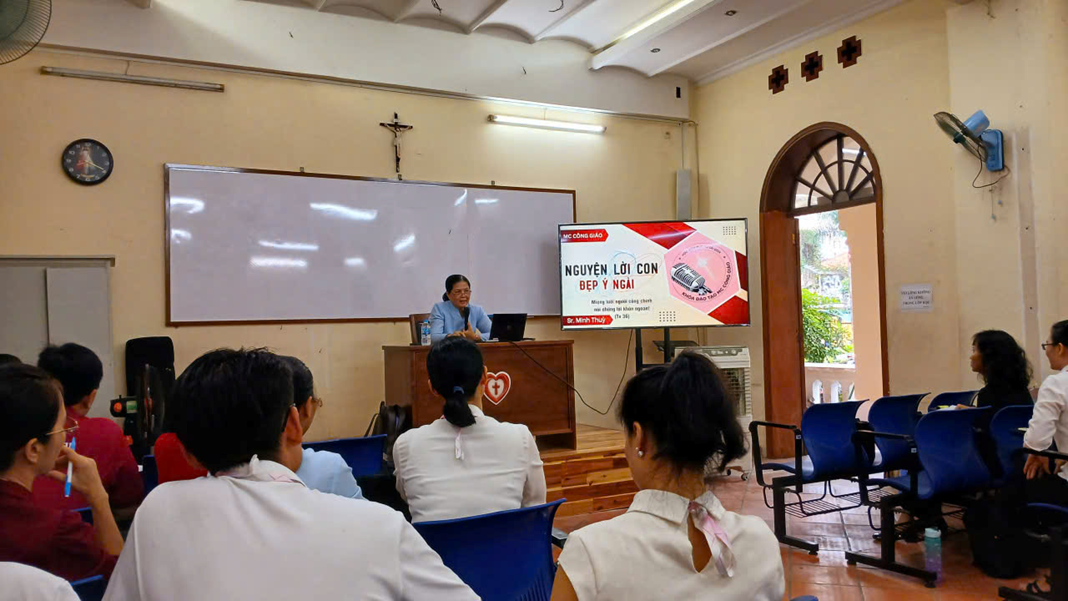 Sáng ngày 8-11-2025, tại Trung tâm Mục vụ Tổng Giáo phận Sài Gòn, lớp MC Công giáo lại cùng nhau học hỏi trong bầu khí ấm áp và thân tình. Giảng viên của buổi học là nữ tu Têrêsa Bùi Thị Minh Thùy, O.P., Tiến sĩ Ngôn ngữ học, người mang niềm say mê đặc biệt với tiếng Việt. Nữ tu hướng dẫn chuyên đề “Tiếng Việt - Phương tiện - Chất liệu”, giúp các học viên hiểu rõ hơn giá trị của ngôn ngữ và cách sử dụng lời nói như một ân sủng.