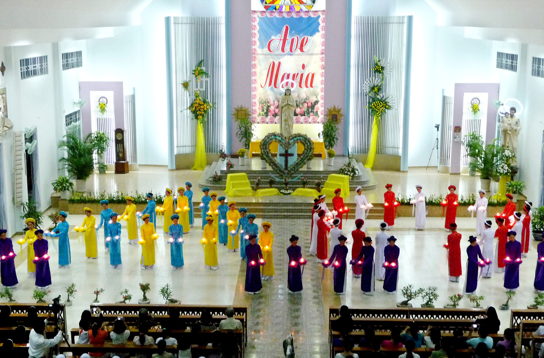 TGPSG ---“Năm sắc hoa tươi màu đẹp xinh, con kết thành vòng hoa dâng lên. Con kính dâng lên Mẹ hoa lòng, tâm tình con với muôn lời kinh.” (Năm sắc hoa dâng Mẹ - Trương Thế Bạch)