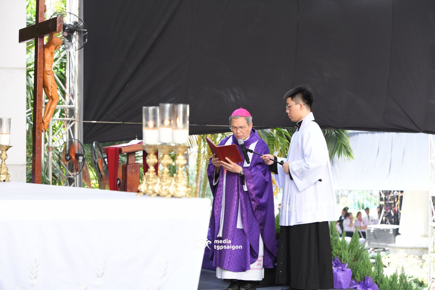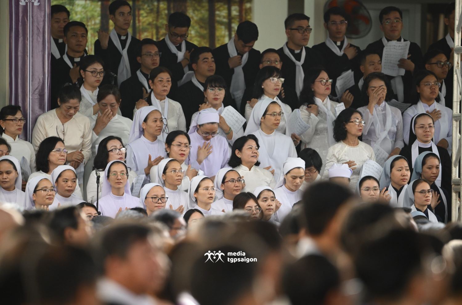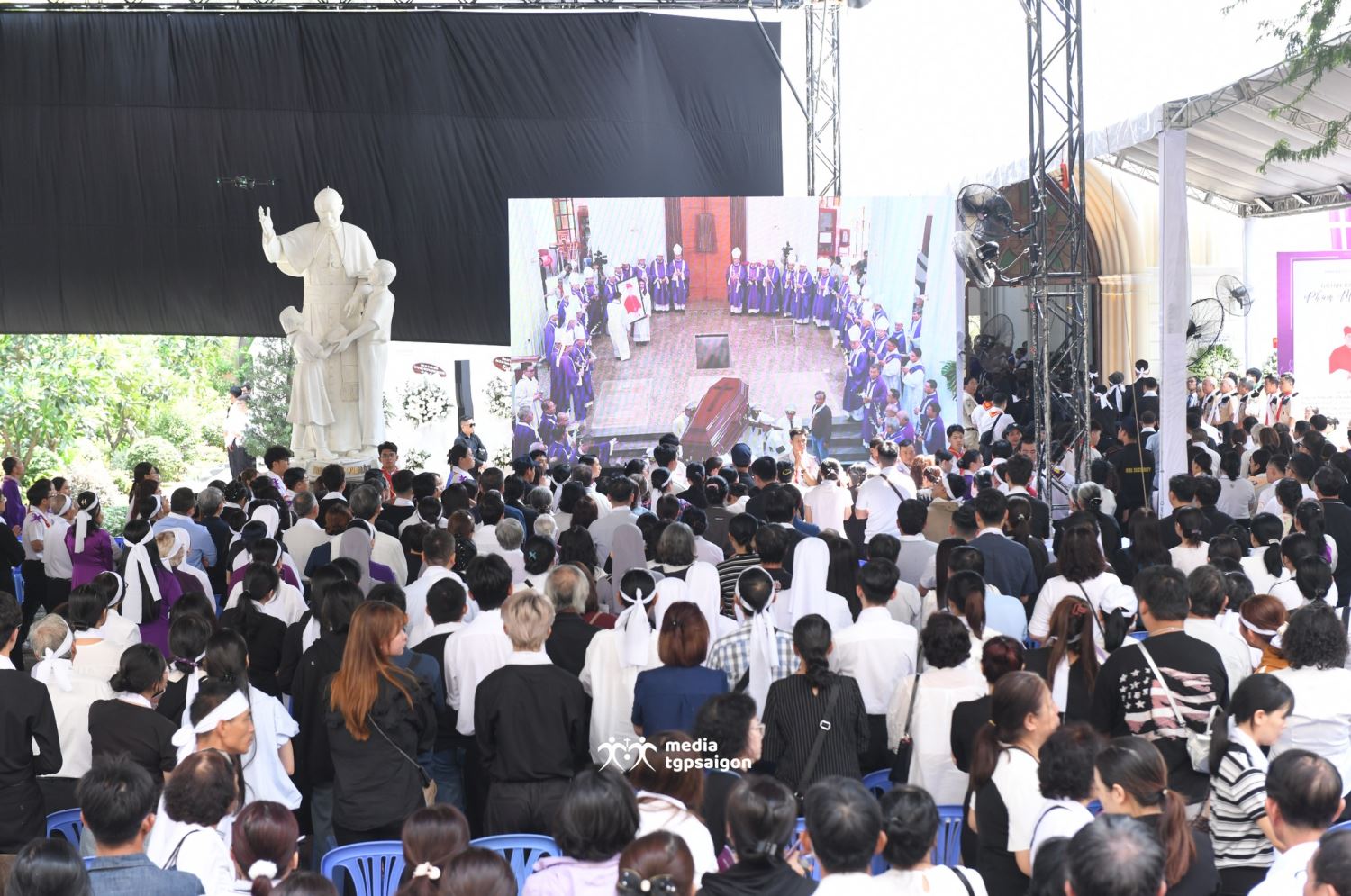Sau khi linh mục Chưởng ấn Tòa Tổng Giám mục Sài Gòn đọc điện văn phân ưu của Đức Thánh Cha Lêô XIV, cộng đoàn phụng vụ đã lắng nghe lời chia buồn của Đức Tổng Giám mục Marek Zalewski - đại diện Tòa Thánh tại Việt Nam - và của Đức Tổng Giám mục Giuse Vũ Văn Thiên - đại diện HĐGM nói lời phân ưu với đại gia đình Tổng Giáo phận Sài Gòn.